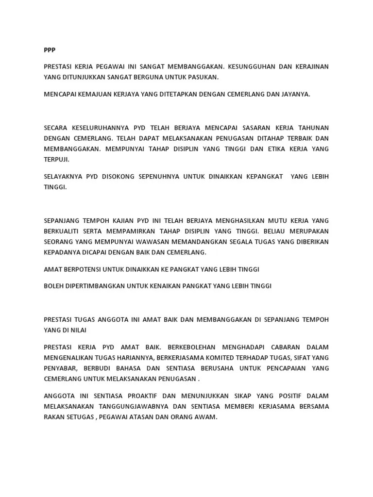 Kemajuan kerjaya contoh ayat ulasan penilaian prestasi kerja ppp . Panduan penilaian prestasi kakitangan awam. Kemajuan kerjaya ulasan contoh komen penilaian prestasi kerja.